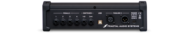 - Puerto FASLINK™ II para conectar a un Axe-Fx III, FM9 o FM3. (Axe-Fx II/AX8/FX8 no soportados).
