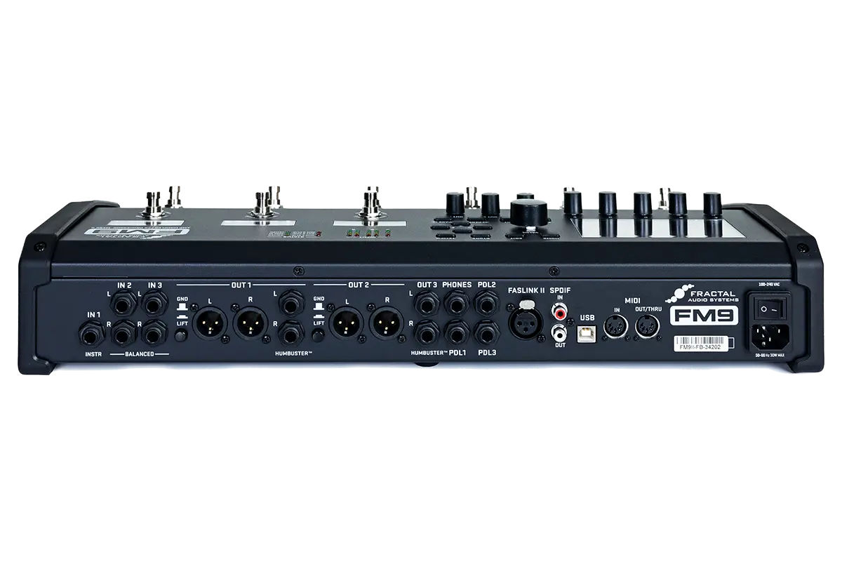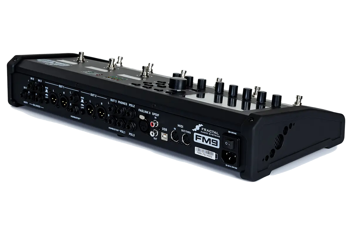 El creador de alegría para guitarristas de gama media, el FM9 MK II Turbo de Fractal Audio, cierra la brecha entre el Axe-Fx III y el FM3 y completa la tercera generación de modeladores de Fractal Audio, galardonados múltiples veces, de la manera más impresionante posible: si el Axe-Fx III es un poco demasiado, pero el FM3 no es suficiente, entonces el FM9 MK II Turbo será exactamente lo que estás buscando. Es todo lo que necesitas tanto en el escenario como en el estudio, todo en una unidad compacta y fácil de usar. El FM9 MK II Turbo de Fractal Audio Systems es un modelador de amplificadores todo en uno, procesador de efectos, controlador, interfaz de audio - y más - diseñado para uso profesional y disfrute personal. El FM9 MK II Turbo cuenta con una impresionante lista de tecnologías y características, incluyendo el modelado de amplificadores Cygnus de Fractal, líder en la industria, simulaciones de altavoces con IR UltraRes™, capacidades DynaCab™ que permiten la libre posición del micrófono, una suite de efectos de pedalera y de estudio con gapless switching, conmutación FC expandible, I/O increíblemente flexible, capacidades de interfaz de audio USB 8x8, un editor de clase mundial para Mac/PC, y mucho más.